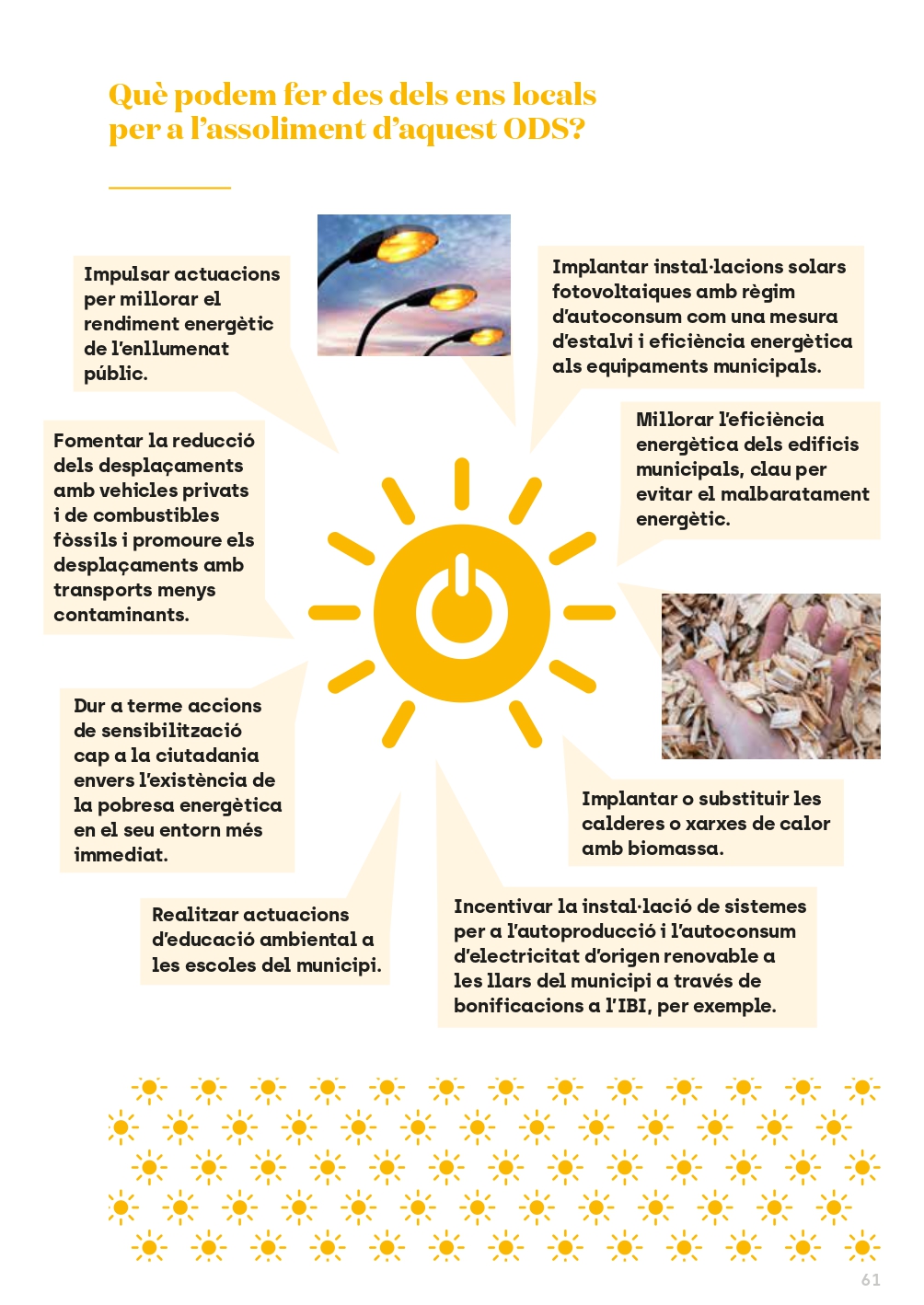 Aquestes xifres fan veure la necessitat d’un replantejament i una reducció dels consums energètics (i d’altres recursos) que, sense disminuir la qualitat de vida, eliminin tots els malbarataments i els usos innecessaris a fi de minimitzar els impactes sobre els ecosistemes. I, aquest canvi de paradigma requereix el compromís dels responsables polítics i les administracions en tots els nivells (i d’una manera especial de les administracions locals), però alhora no serà possible sense la comprensió de la ciutadania sobre el canvi que hem d’abordar i la complicitat per dur-ho a terme.